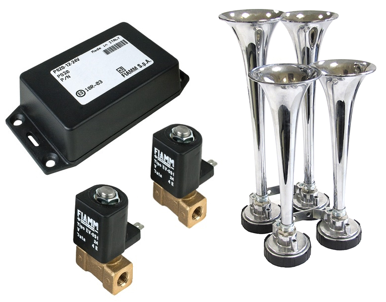 Das Ventilsystem PS20 ist ideal für alle Fahrzeuge, welche bereits über ein eignenes Druckluftsystem verfügen. Das Set besteht aus zwei Elektroventilen sowie einem Steuergerät, welches für den korrekten Ablauf der Tonfolge sorgt. Durch den Wegfall des zusätzlichen Kompressors wird der Einbau erleichtert sowie die Wartung reduziert. Eine Sonderfunktion dieser Anlage ist die "Airhorn"-Funktion, mit der die Hörner als Hupe genutzt werden können.