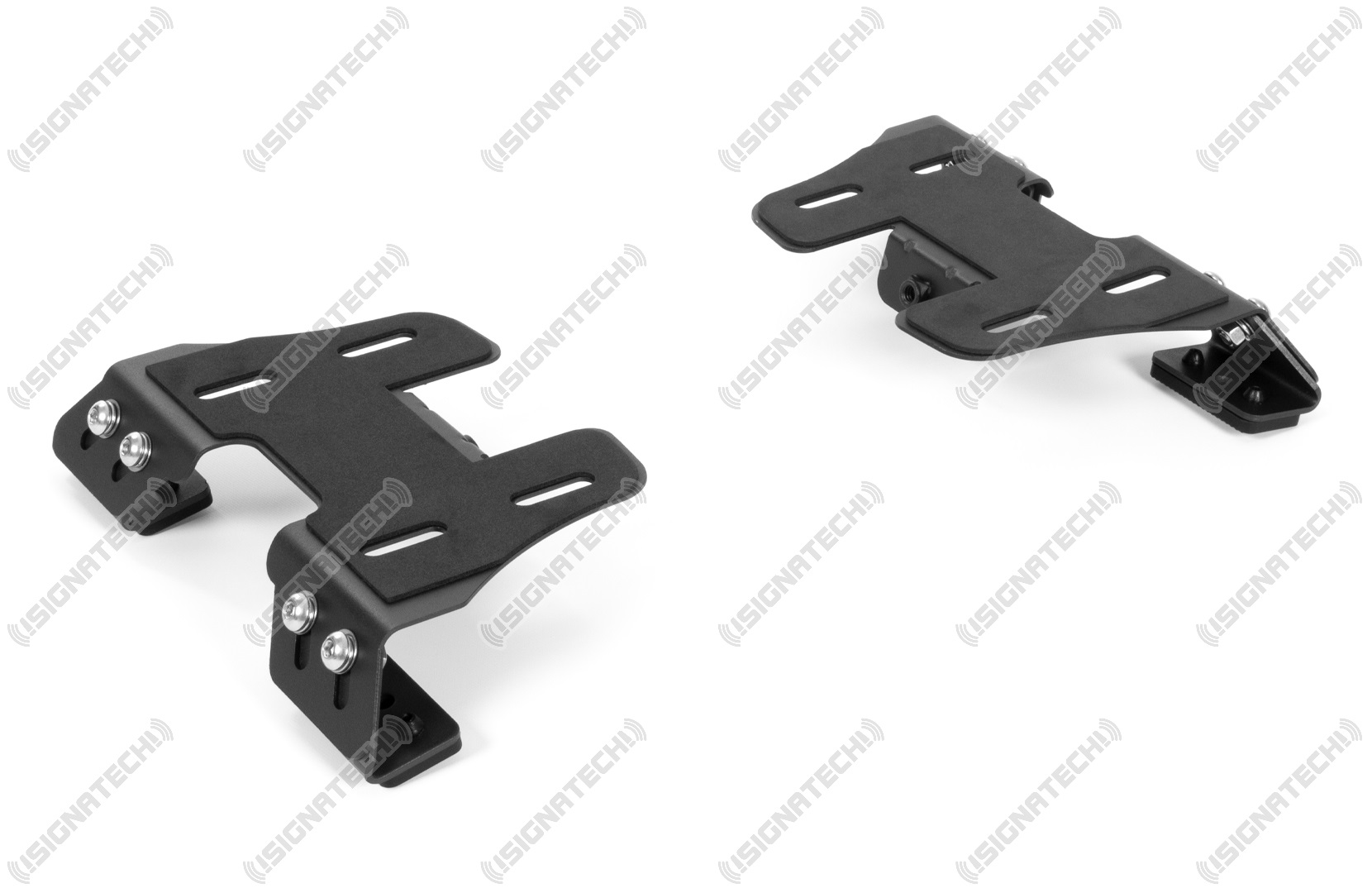Metall-Montagefüße zur Festmontage der LED-Warnbalken Serie LEGION. Die Füße sind an der Auflagefläche etwas abgeschrägt, daher geeignet für gewölbte Dächer. Durch die Langlöcher an der Seite kann der Balken in der Höhe verstellt werden (ca. 4,5 - 6 cm Abstand vom Dach auf Fußhöhe), ebenfalls kann der Balken auch geneigt werden, falls das Dach etwas abfallend ist.